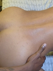 Tattooed muscle boy Hudson Malone shows his huge uncut dick