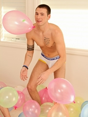 Sexy teen shoots a hot load all over his tight young body.