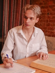 Beautiful skinny twink Chris Ox plays with his ass