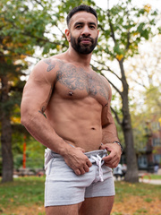 Sexy tattooed daddy Dominik Balta playing with his big uncut dick