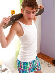 College boy Calvin Rosse masturbates with sneaker.