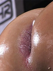Muscled ass stretched. Huge dildo.