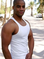Samuel Star, sporting a chiseled muscular body and a nice big cock, flexes his guns and works his pole just for you.