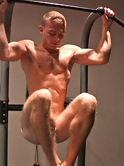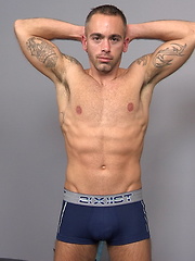 Athletic stud Enzo Bloom masturbates his hard cock.