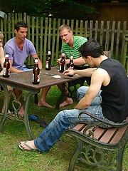 Filthy Bitch New-Boy Gets Double Tagged By Beer-Swilling Fuck-Buddies!
