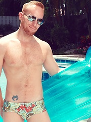 Strawberry blond gym jock Jesse Knight will find a place in your fantasies thanks to his handsome face, fiery red pubes and beautiful uncut cock.