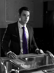 Gay in suit posing