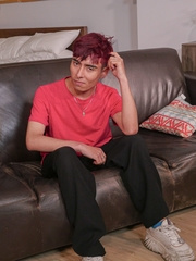 Skinny latino Liam Zuares playing with his uncut dick