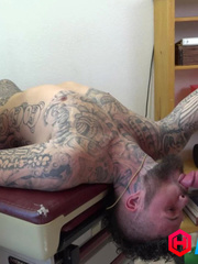 Sexy tattooed daddy Dominik Balta playing with his big uncut dick