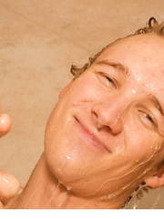Rikki's first scene. He jacks off his big uncut dick then takes a shower.