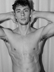 Beautiful curly twink Leo Animo playing with his huge uncut cock