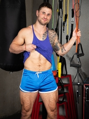 Leo Cooper strips in a gym
