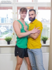 Curly handsome lad Calvin Michaels fucking Dylan Creamer's sexy muscled ass